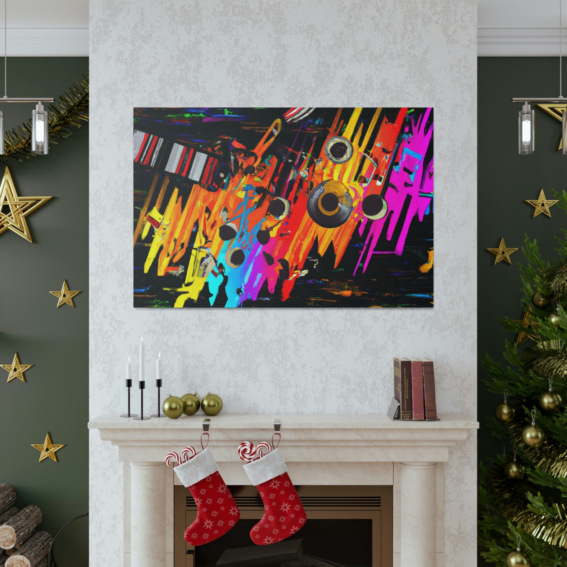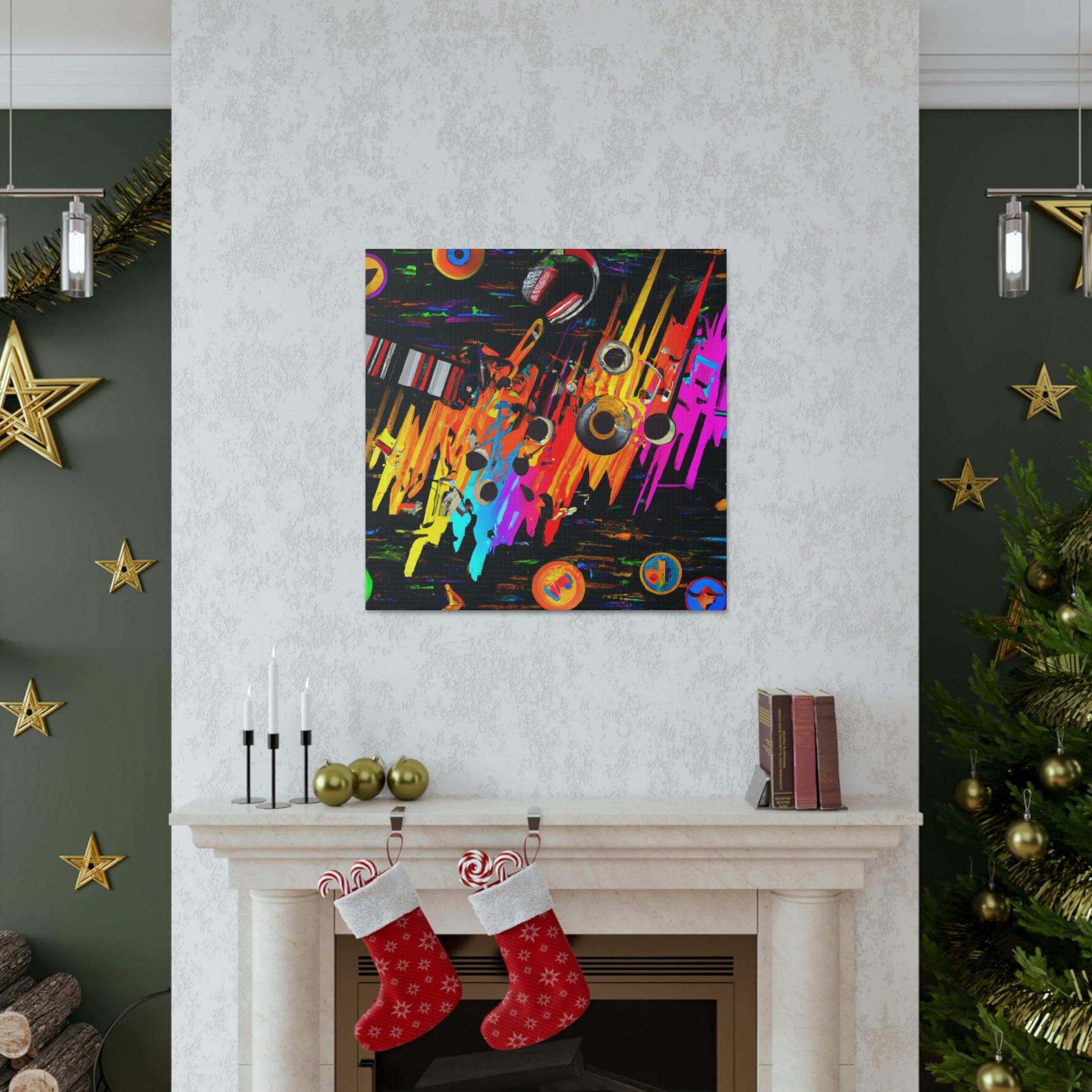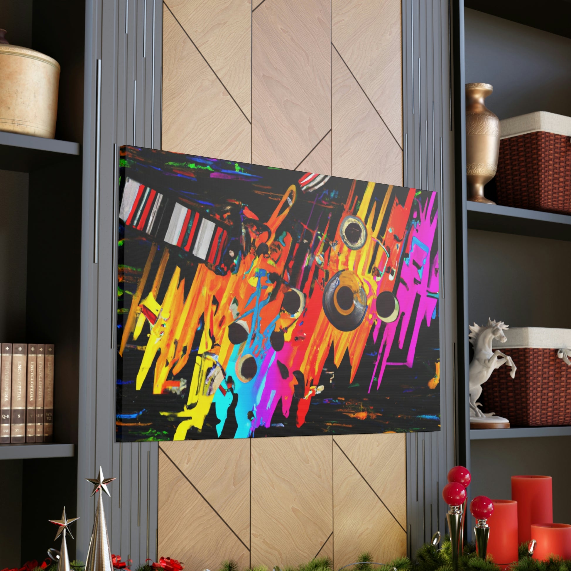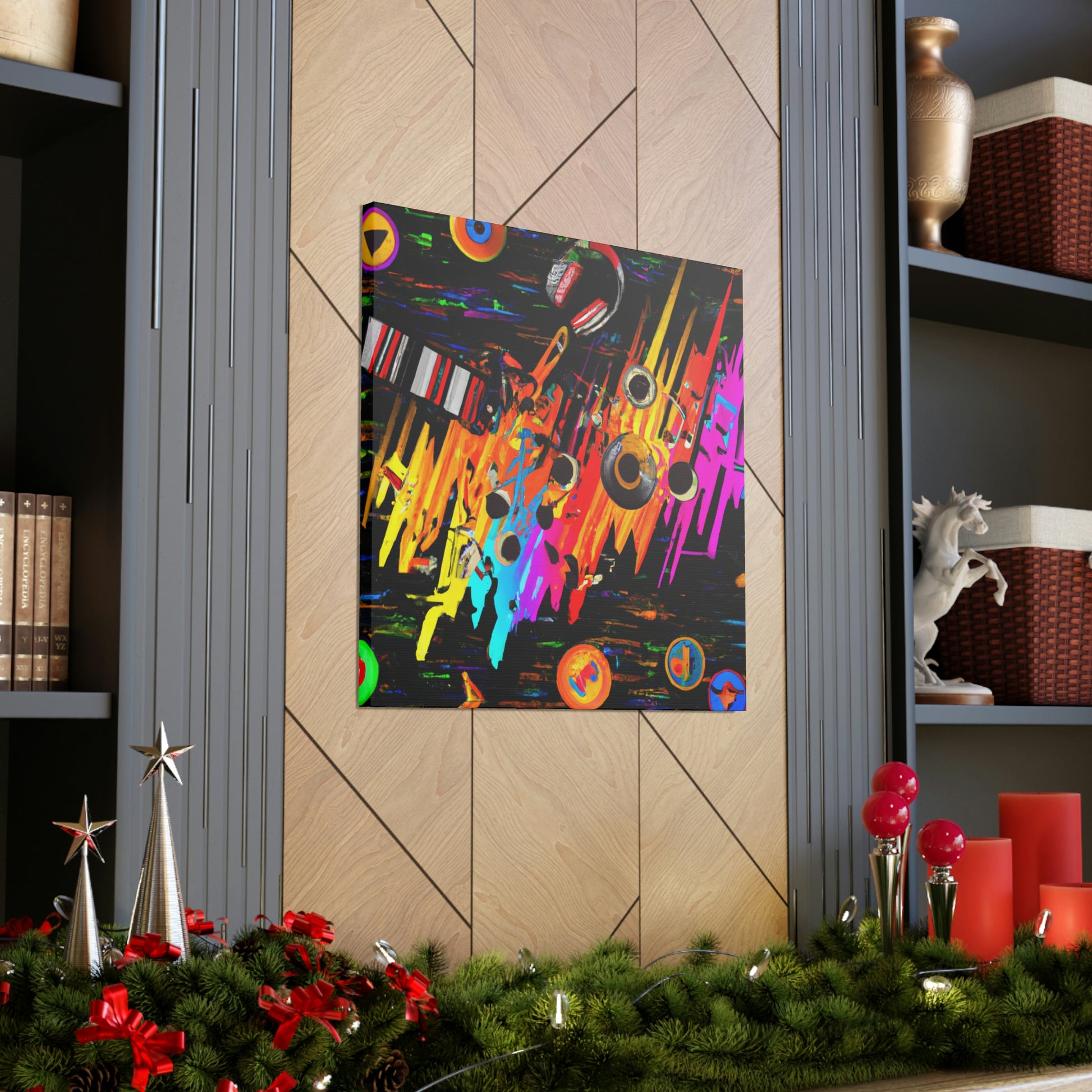 This stunning canvas captures the power of music production with bold and vibrant colors. Its abstract shapes and lines flow together to evoke creativity and inspire innovation. Let its blend of art, technology, and human expression fill the recording studio and remind the creators of the limitless potential of their craft. This piece holds the potential to be the visual representation of the next chart topping hit! #Art #Music #Technology #Inspiration #Creativity #AbstractArt #Canvas #Vibrant #RecordingStudio #HumanExpression #Soundwaves